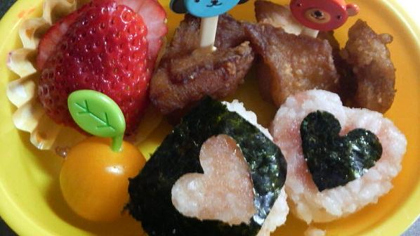 ④ケチャップで、ほっぺを付けたら出来上がり~