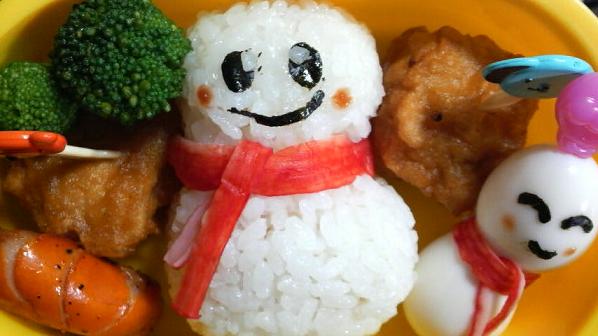 (ふふふっと、雪をネタにして、今日は雪ダルマのお弁当にしました