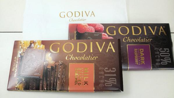 ゴディバの板チョコ2枚と